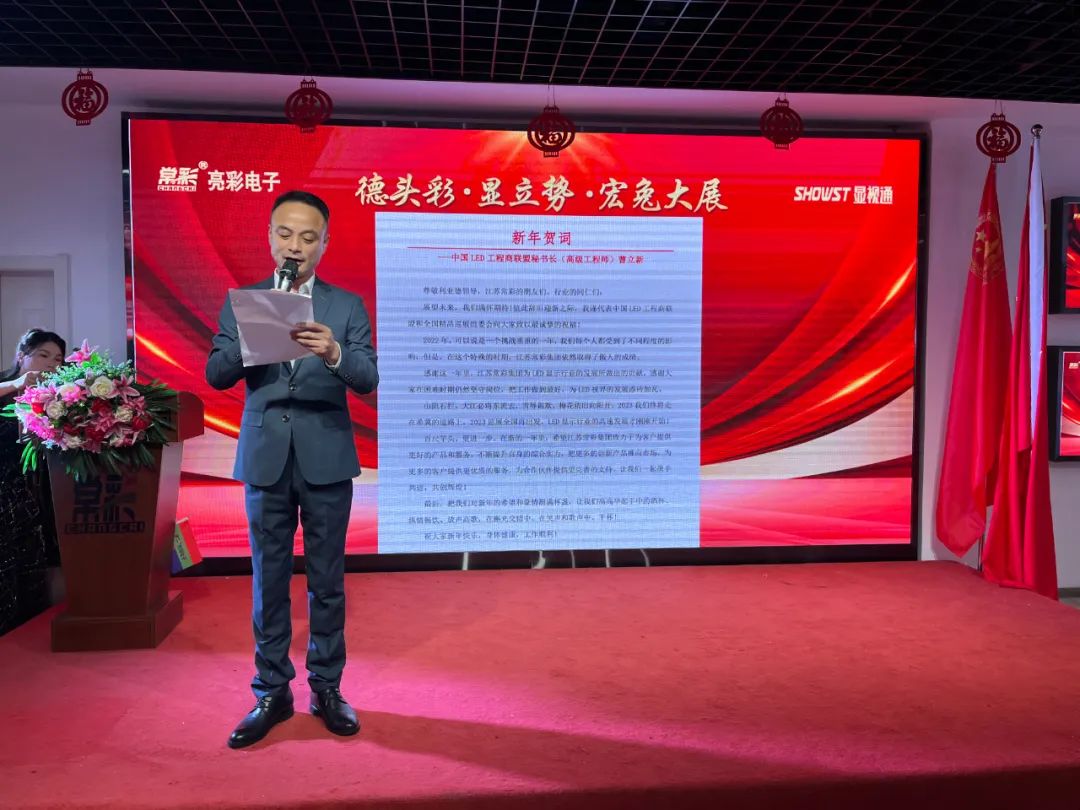 ▲曹立新先生 中國LED工程商聯(lián)盟秘書長(高級工程師) 曹秘書長雖未親臨年會現(xiàn)場,他給我們帶來了新年賀詞: 展望未來,我們滿懷期待!值此辭舊迎新之際,我謹(jǐn)代表中國LED工程商聯(lián)盟和全國精品巡展組委會向大家致以最誠摯的祝福! 在新的一年里,希望江蘇亮彩致力于為客戶提供更好的產(chǎn)品和服務(wù),不斷提升自身的綜合實力,把更多的創(chuàng)新產(chǎn)品推向市場,為更多的客戶提供更優(yōu)質(zhì)的服務(wù),為合作伙伴提供更完善的支持,讓我們一起攜手共進(jìn),共創(chuàng)輝煌! 酒興高至,此時情意正濃,讓我們在這載歌載笑的氛圍中,正式拉開今日宴會的序幕。 一等獎得主 年會怎么能少了大家最最最期待的抽獎環(huán)節(jié)呢? 我們的獎項設(shè)置如下: 新年好運(yùn)來,把好運(yùn)延續(xù),希望2023年大家都能“兔”來運(yùn)轉(zhuǎn),鴻運(yùn)當(dāng)頭。 相聚的時光雖然短暫,但這份感動和美好,卻將永遠(yuǎn)留存在我們心中。就讓我們相約在未來的前行路上,一路攀高,彼此照耀。也讓我們相約明年再會。 不負(fù)過去,不懼未來。 以奮斗之心,迎接2023!
