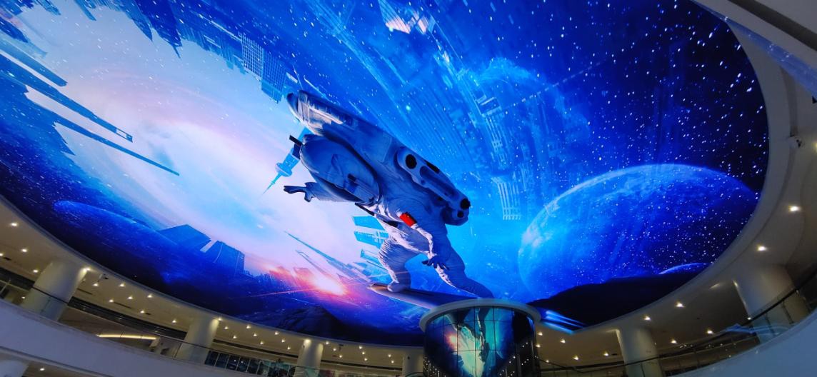 地下沉浸商業(yè)街被800多平方的LED天幕完整覆蓋,高清亮麗的顯示效果給當(dāng)?shù)厝巳簬砹苏鸷掣惺埽鼓唤蹬R,氣勢恢宏,炫彩繽紛的天幕畫面,讓購物之旅、聚友約會更加浪漫、夢幻。待該商場開業(yè)后,有望形成常州一個網(wǎng)紅打卡地,真正做到了“一屏引動半坐城”的效果。